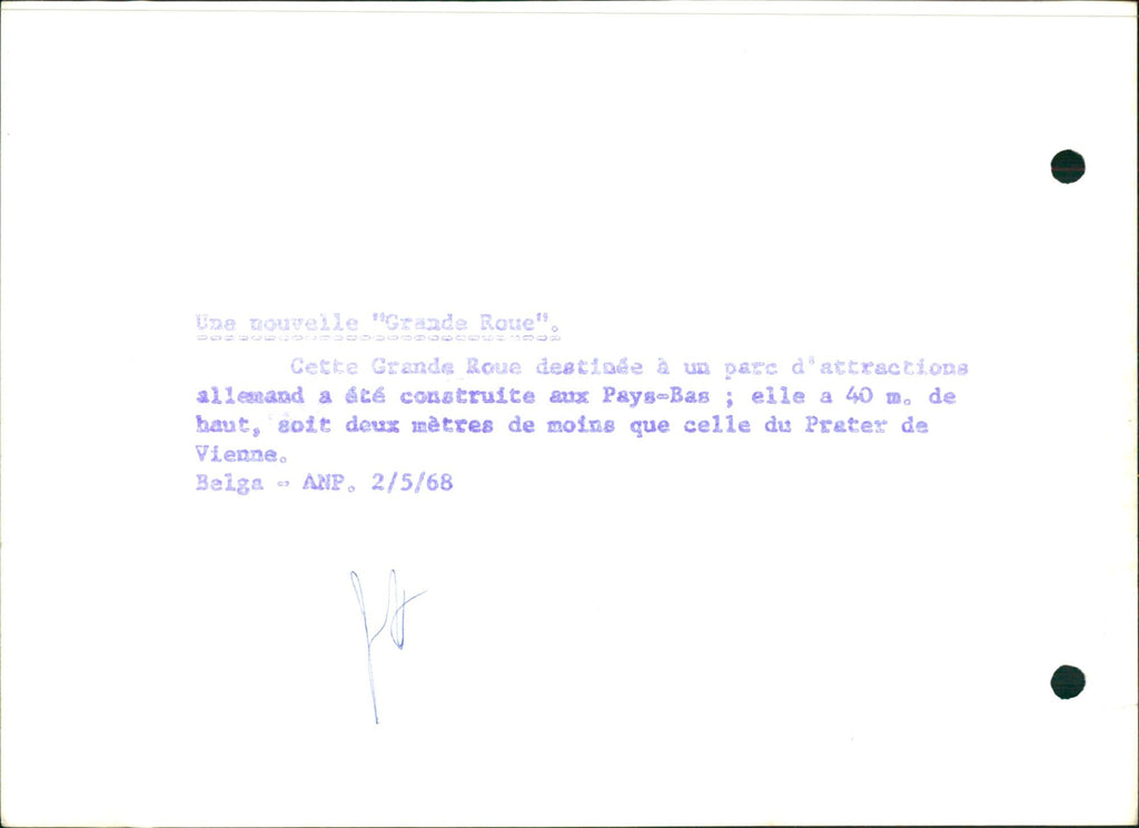 This Big Wheel intended for a German amusement park was built in the Netherlands; she has a height of 40 m., only two meters shorter than that of the Prater of Vienna.