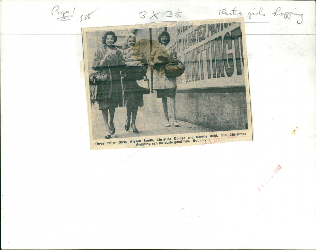 Three tiller girls: Alyson Smith, Christine Doidge, and Connie Reid find Christmas shopping as fun Three tiller girls: Alyson Smith, Christine Doidge, and Connie Reid find Christmas shopping as fun