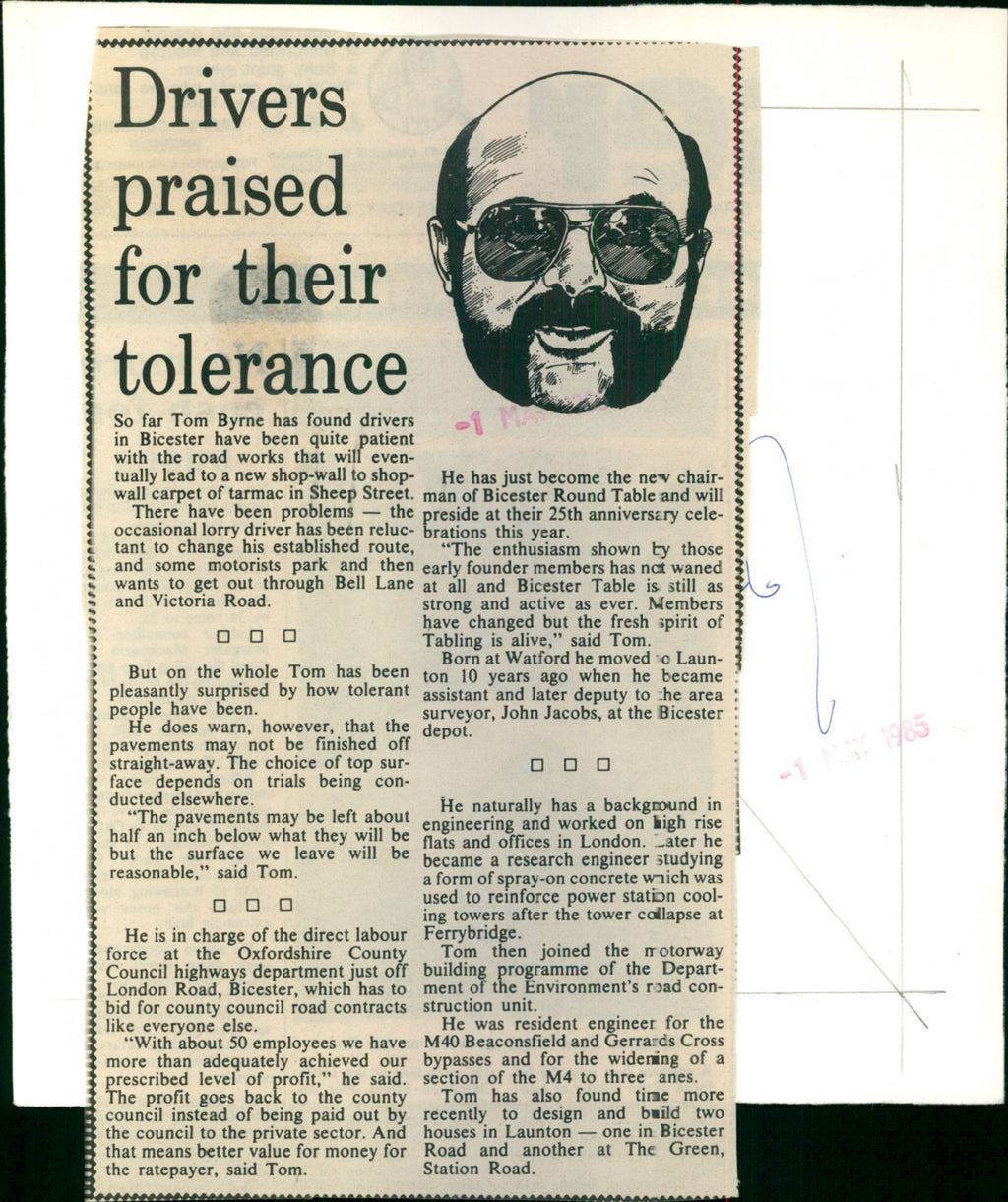 Tom Byrne, who was in charge of the direct labor force at Oxfordshire County Council highways department just off London Road, Bicester. Tom Byrne, who was in charge of the direct labor force at Oxfordshire County Council highways department just off London Road, Bicester.