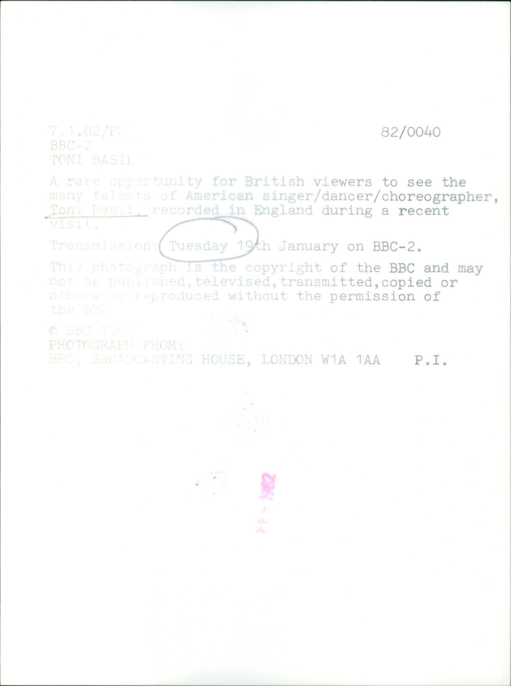 Toni Basil, American singer / dancer / choreographer. Toni Basil, American singer / dancer / choreographer.