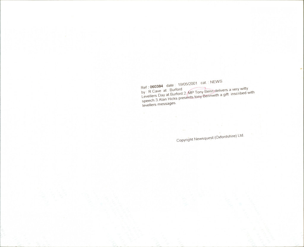 MP Tony Benn delivers a very witty speech at the Levellers Day at Burford. MP Tony Benn delivers a very witty speech at the Levellers Day at Burford.