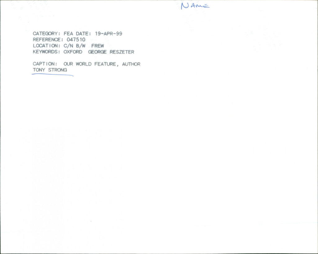 Press photo of author Tony Strong. Press photo of author Tony Strong.