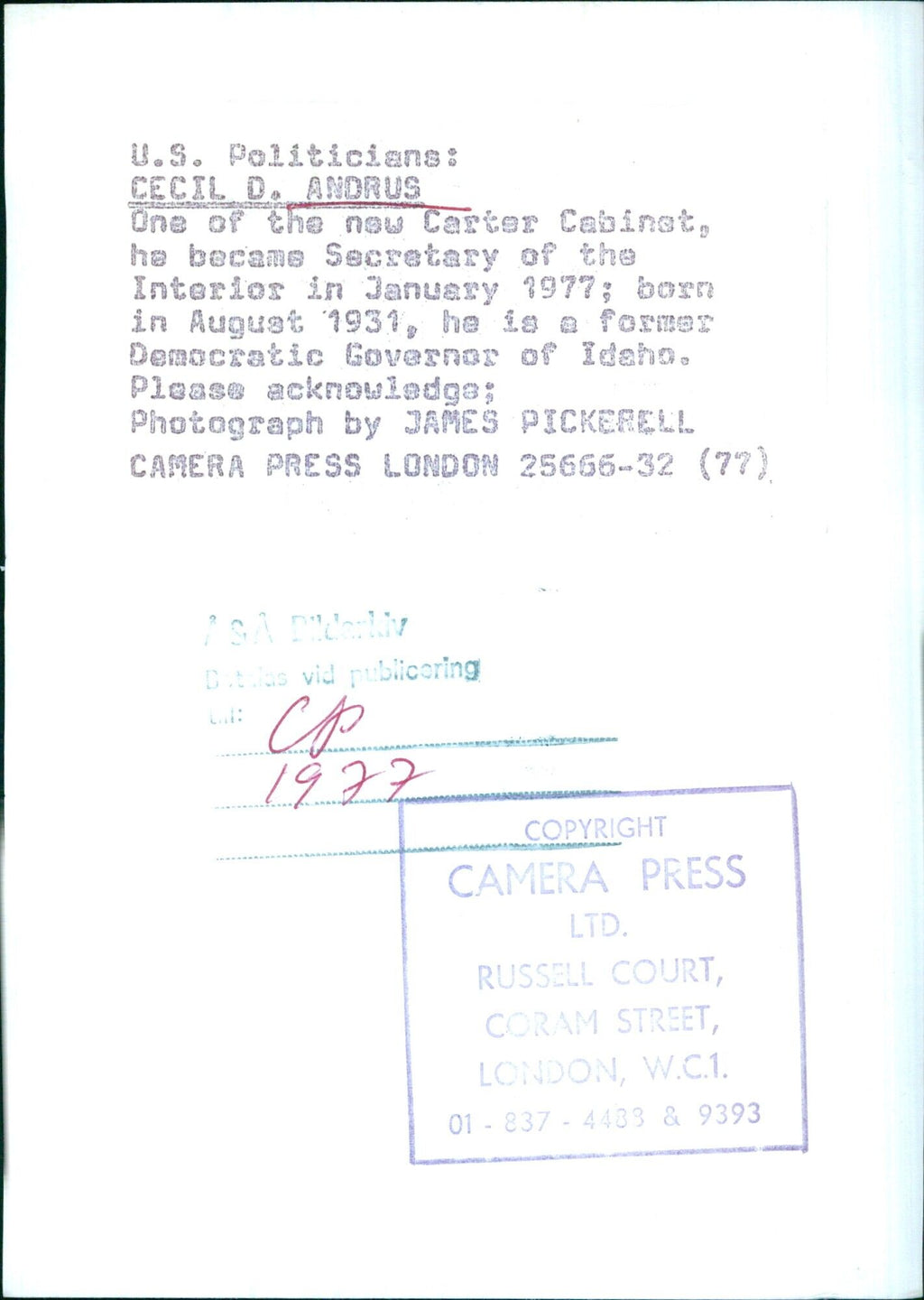 U.S. Politicians: CECIL D. ANDRUS - Vintage Photograph