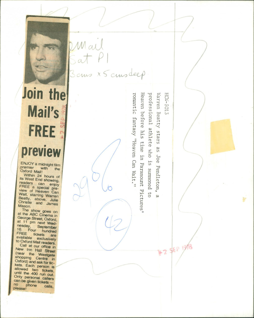 Warren Beatty stars as Joe Pendleton, a professional athlete who is summoned to Heaven before his time in Paramount Pictures romantic fantasy 'Heaven Can Wait' Warren Beatty stars as Joe Pendleton, a professional athlete who is summoned to Heaven before his time in Paramount Pictures romantic fantasy 'Heaven Can Wait'