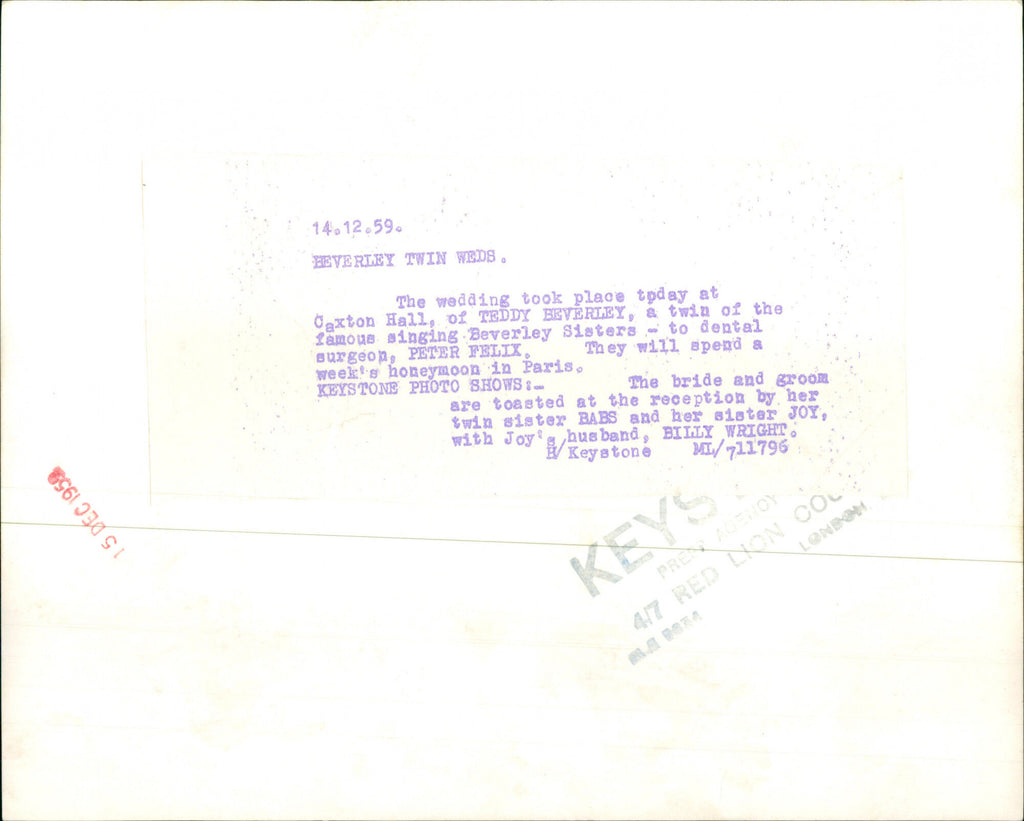 Wedding of Teddie Beverley and Peter Felix - Vintage Photograph