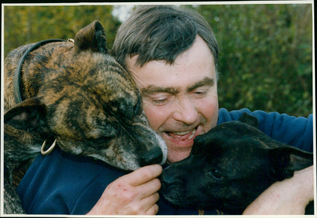 William Walker with two of his Staffordshire Bull Terriers, Jim (left) and Dolly. William Walker with two of his Staffordshire Bull Terriers, Jim (left) and Dolly.