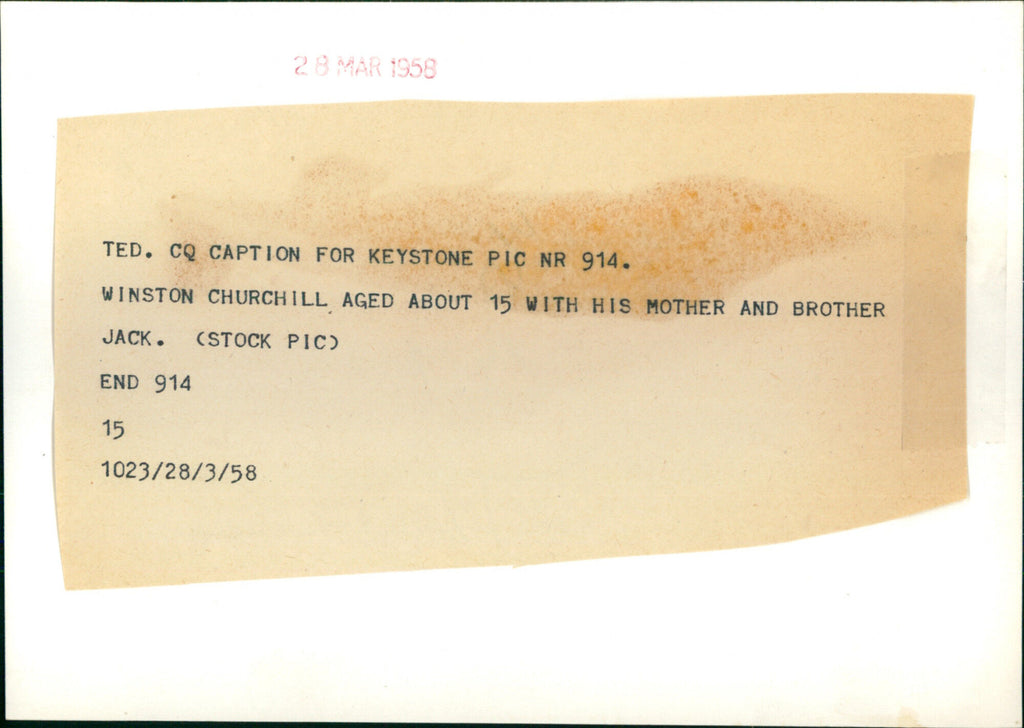 Winston Churchill aged about 15 with his mother and brother Jack. Winston Churchill aged about 15 with his mother and brother Jack.