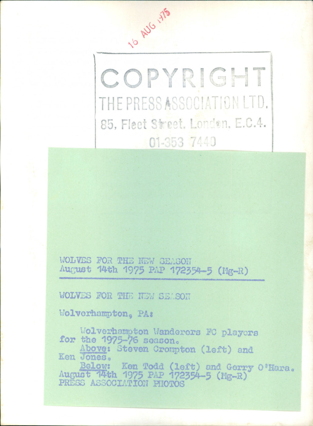 All our press photos are LIMITED ARCHIVE ORIGINALS - they are the actual prints that were used by the newspapers, they are not reprints or digital prints produced by us. All the prints are at least 30 years old and up to 100 years old.