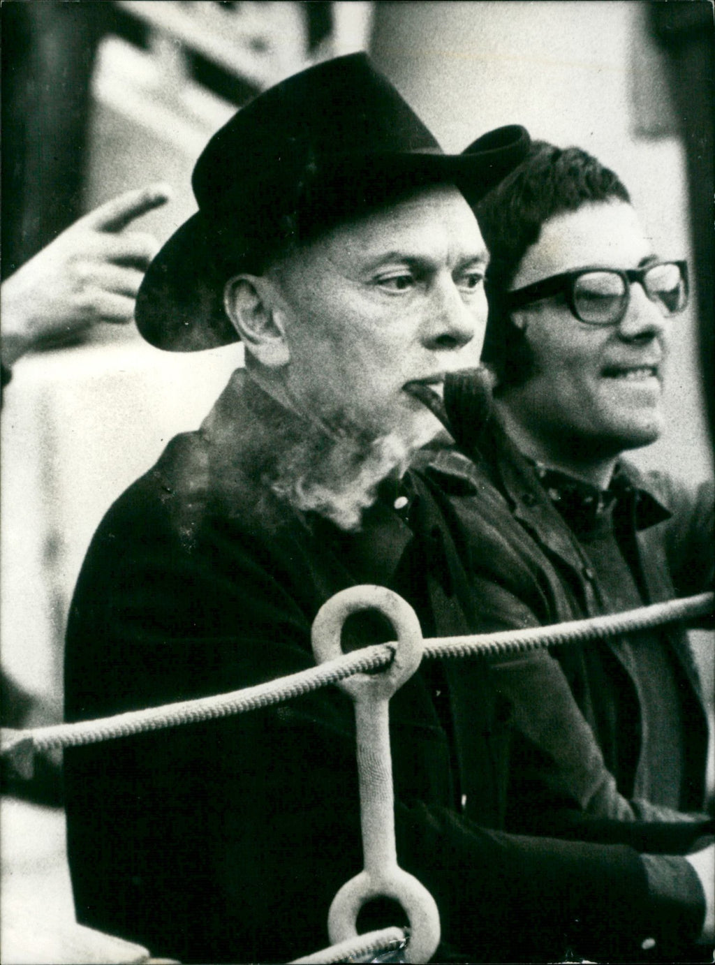 Yul Brynner wearing a black hat and puffing contentedly at his pipe. Yul Brynner wearing a black hat and puffing contentedly at his pipe.