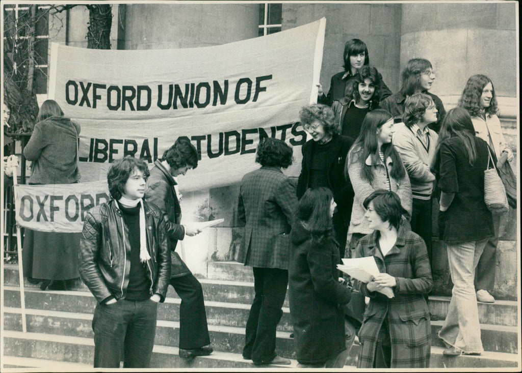 Student protesters outside Oxford University. Student protesters outside Oxford University.