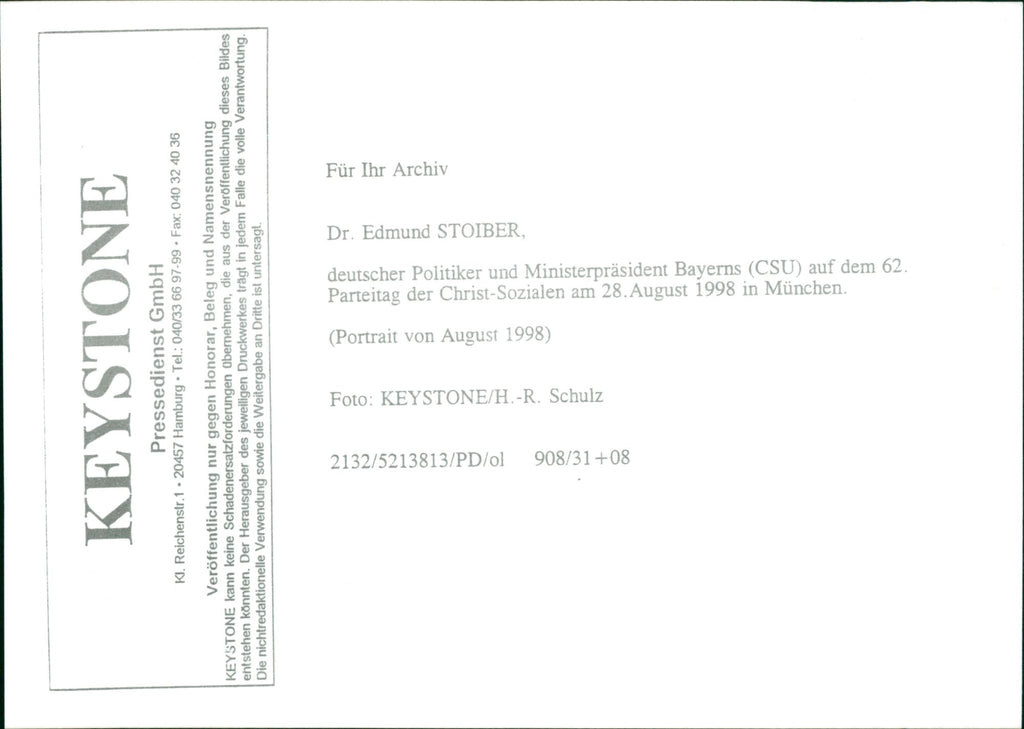 Edmund Rüdiger Stoiber is a German politician, who was the 16th Minister President of the state of Bavaria between 1993 and 2007 and chairman of the Christian Social Union between 1999 and 2007.