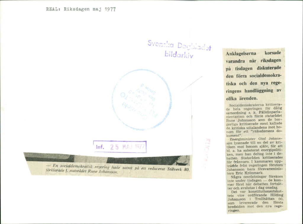 F. Rune Johansson during the 1977 Parliament. - Vintage Photograph