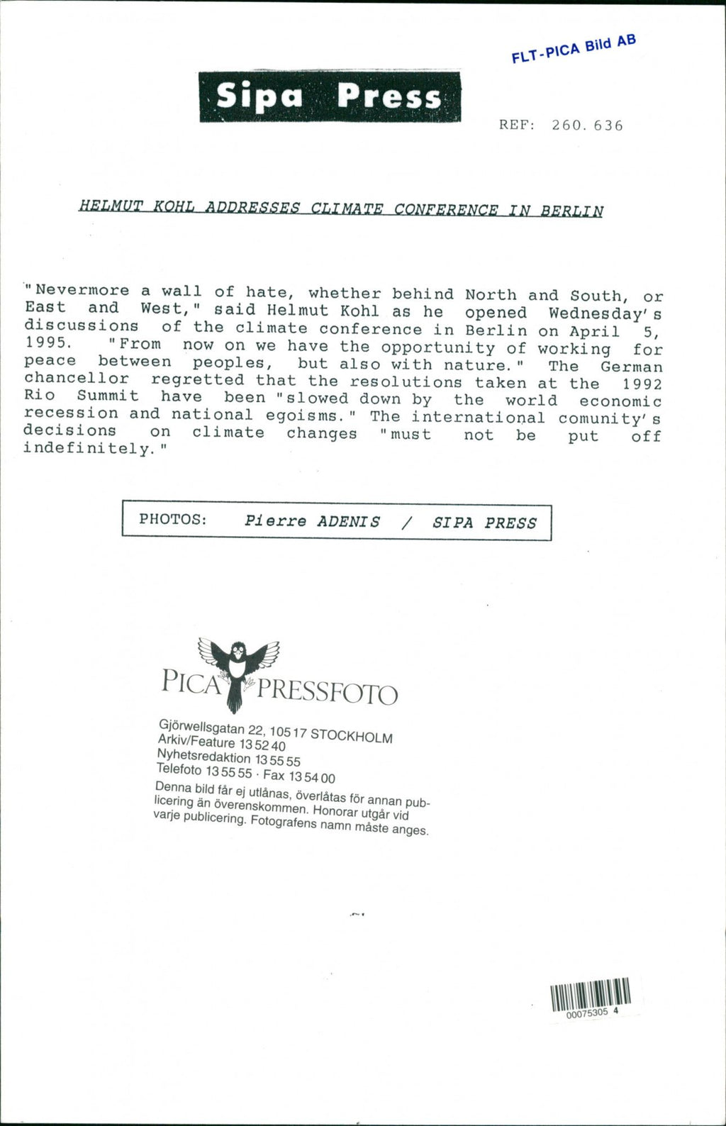 Nevermore a wall of hate, whether behind North and South, or said Helmut Kohl as he and discussions 1995 East West, of the climate conference in Berlin on April 5, now we have the opportunity of working peoples, regretted that the resolutions taken at the have opened Wednesday's "From between for реасe chancellor Summit but also with nature."