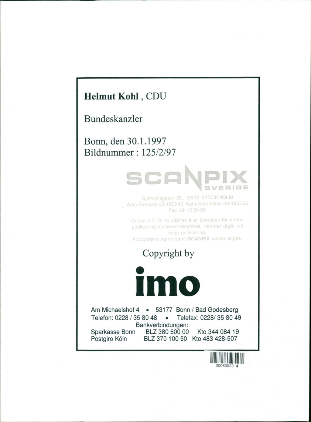 Helmut Kohl, Politician West Germany Portrait & Speaker color.