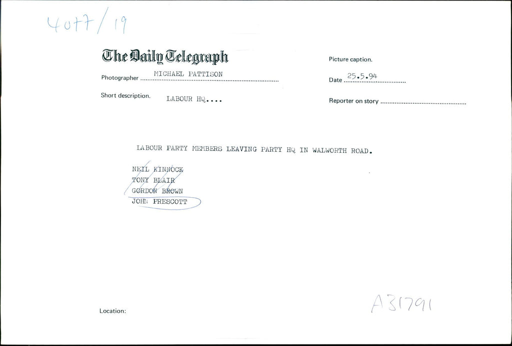 Labour Party Member John Prescott leaving party HQ in Walworth Road. Labour Party Member John Prescott leaving party HQ in Walworth Road.