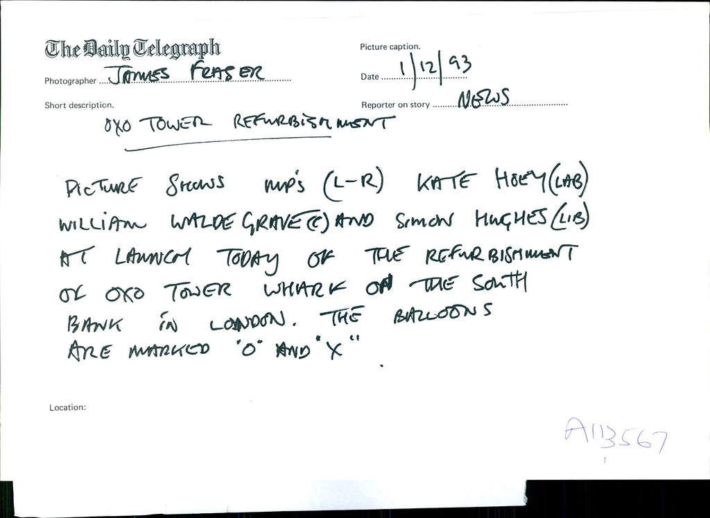 MP's Kate Hoey, William Waldegrave and Simon Hughes at launch of the refurbishment of Oxo Tower. MP's Kate Hoey, William Waldegrave and Simon Hughes at launch of the refurbishment of Oxo Tower.