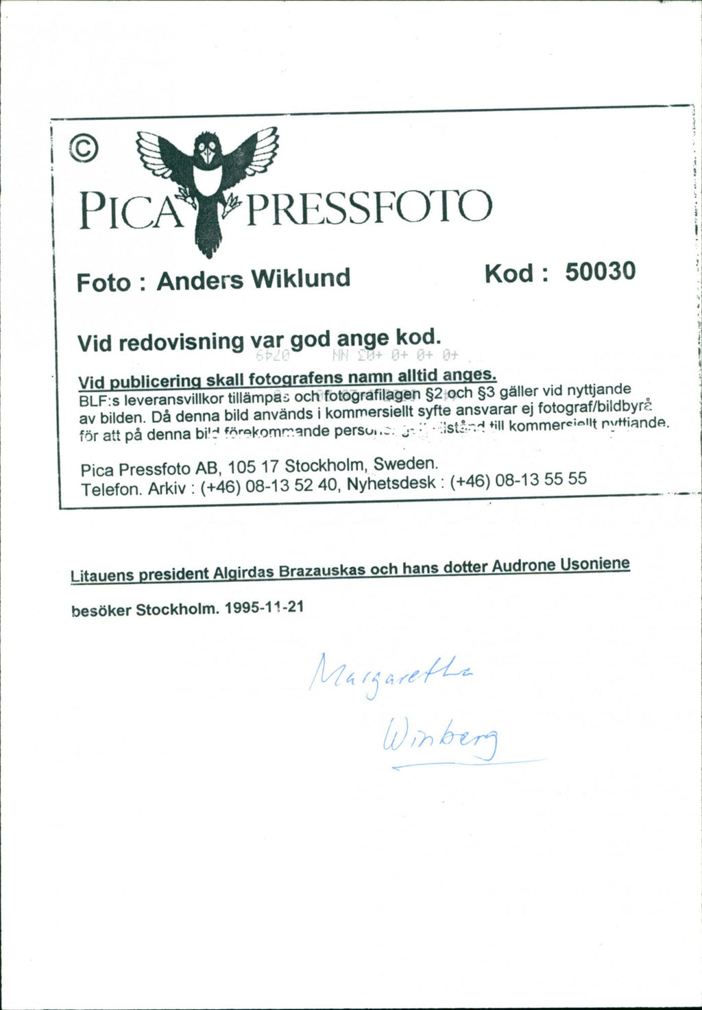 All the original vintage images are sold without watermarks. The prints are all over 30 years old and have been in the storage of the newspapers for decades. We sell them in the same conditions they were given to us by the archives.