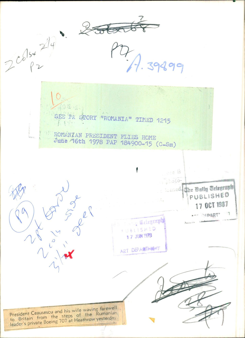 President Ceausescu and his wife waving farewell to Britain from the steps of the Rumanian leader's private Boeing 707 at Heathrow. President Ceausescu and his wife waving farewell to Britain from the steps of the Rumanian leader's private Boeing 707 at Heathrow.