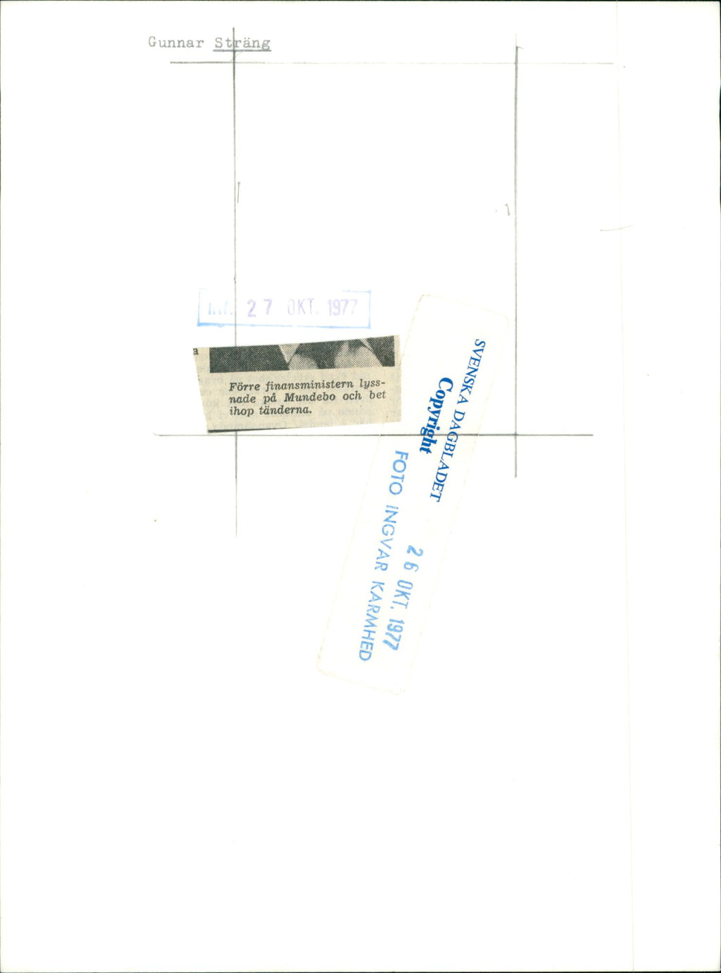 Gunnar Georg Emanuel Sträng (23 December 1906 – 7 March 1992) was a Swedish Social Democratic politician, most known for being Sweden's longest serving Minister for Finance.