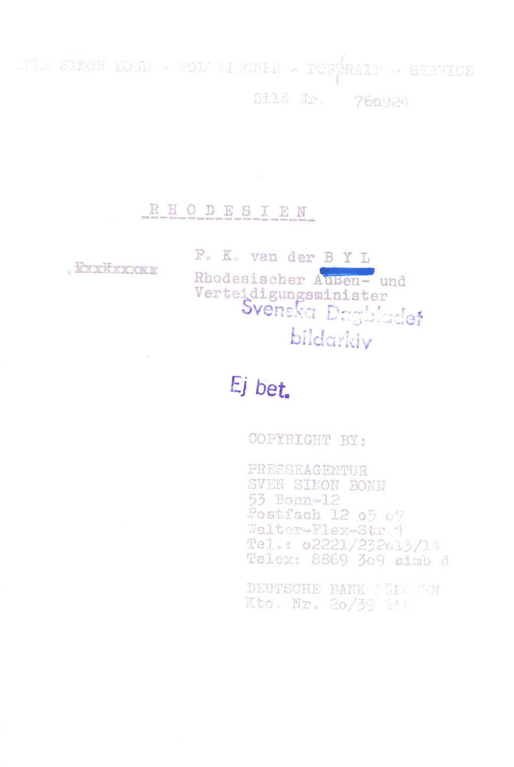 was a Rhodesian politician who served as his country's Foreign Minister from 1974 to 1979 as a member of the Rhodesian Front (RF). A close associate of Prime Minister Ian Smith, Van der Byl opposed attempts to compromise with the British government and domestic black nationalist opposition on the issue of majority rule throughout most of his time in government. However, in the late 1970s, he supported the moves which led to majority rule and internationally recognized independence for Zimbabwe.