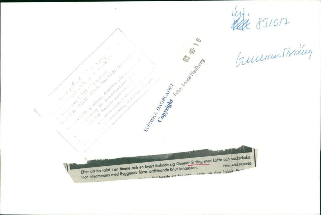 Swedish politician Gunnar Strang in chat with Knut Johansson - Vintage Photograph