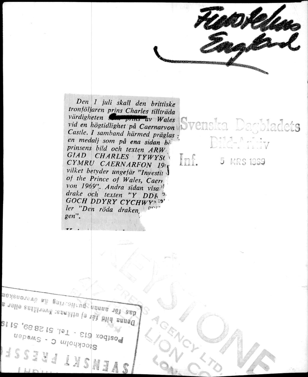 Medal of Prince Charles taken possession at the ceremony at Caernarvon Castle - Vintage Photograph