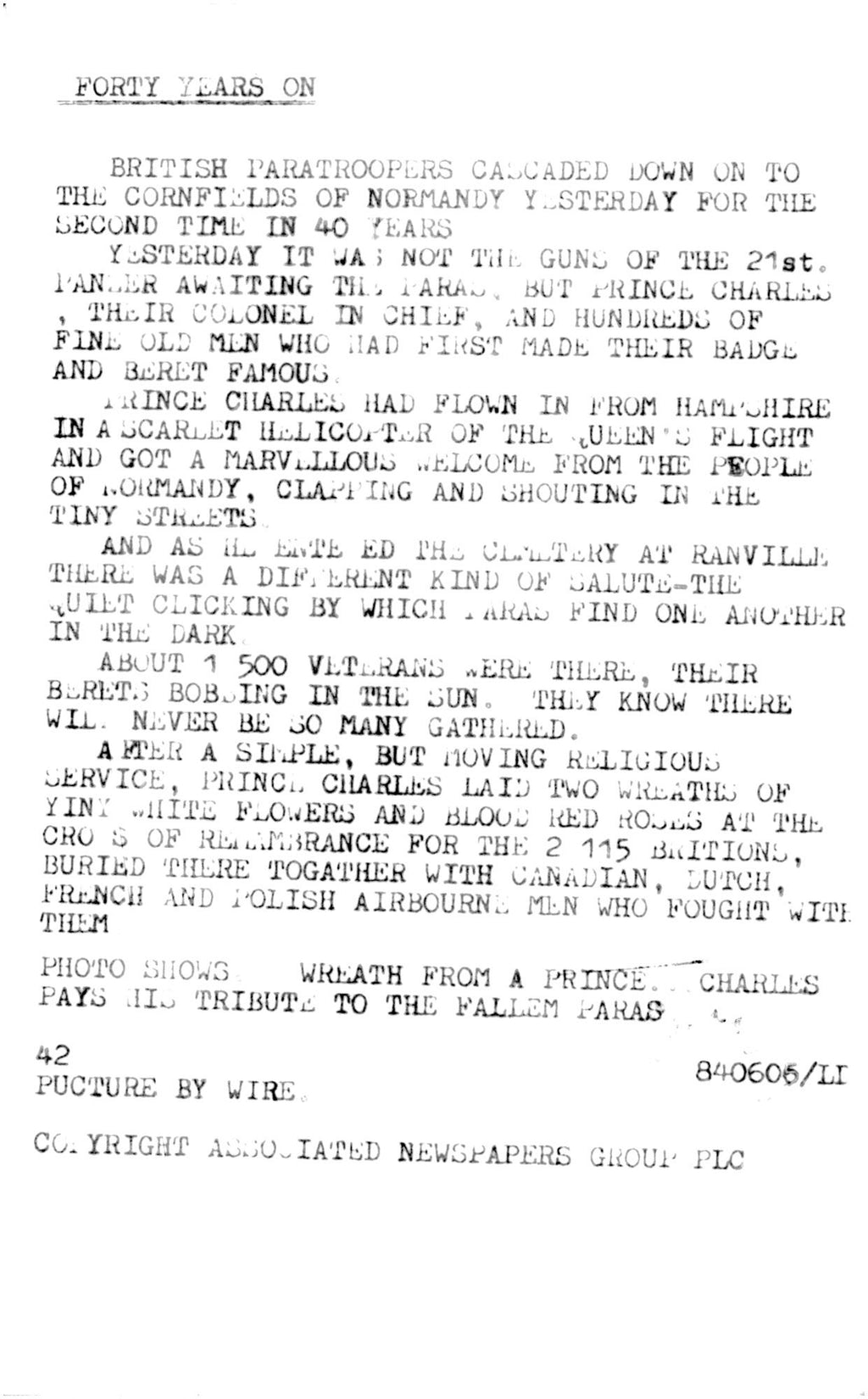 Prince Charles spends krnas the 40th anniversary of the end of the war - Vintage Photograph
