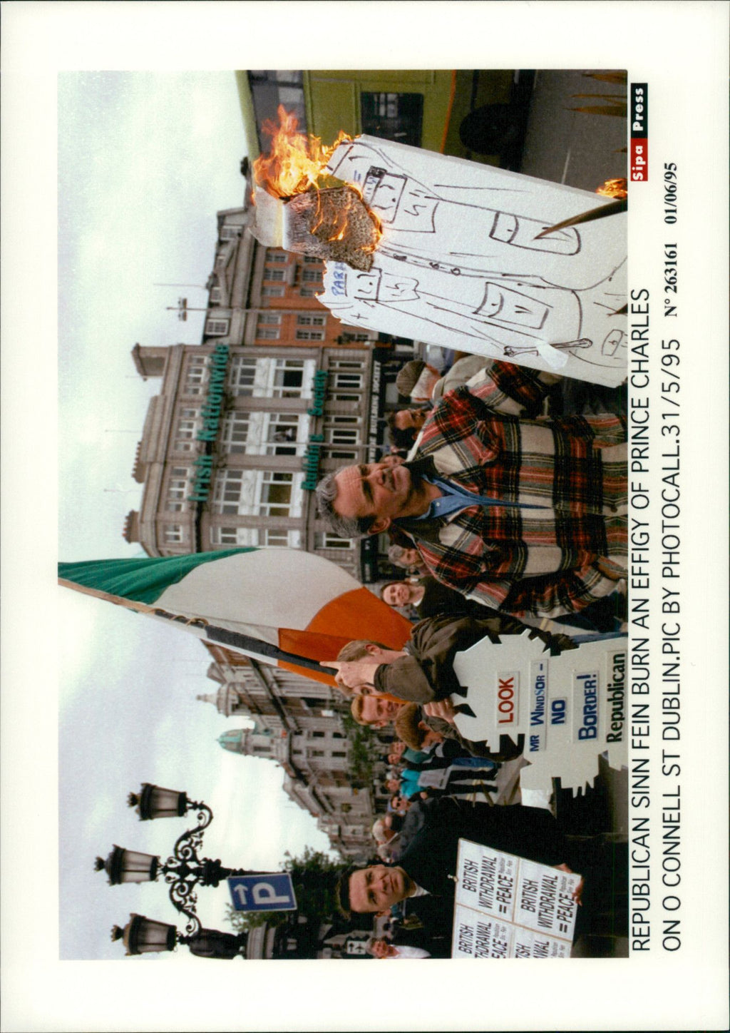 The Republican Sinn Fein burns an image of Prince Charles on O'Connel Street Ireland, Northern Ireland, demonstrations, unrest, demonstration, protest, protest The Republican Sinn Fein burns an image of Prince Charles on O'Connel Street Ireland, Northern Ireland, demonstrations, unrest, demonstration, protest, protest