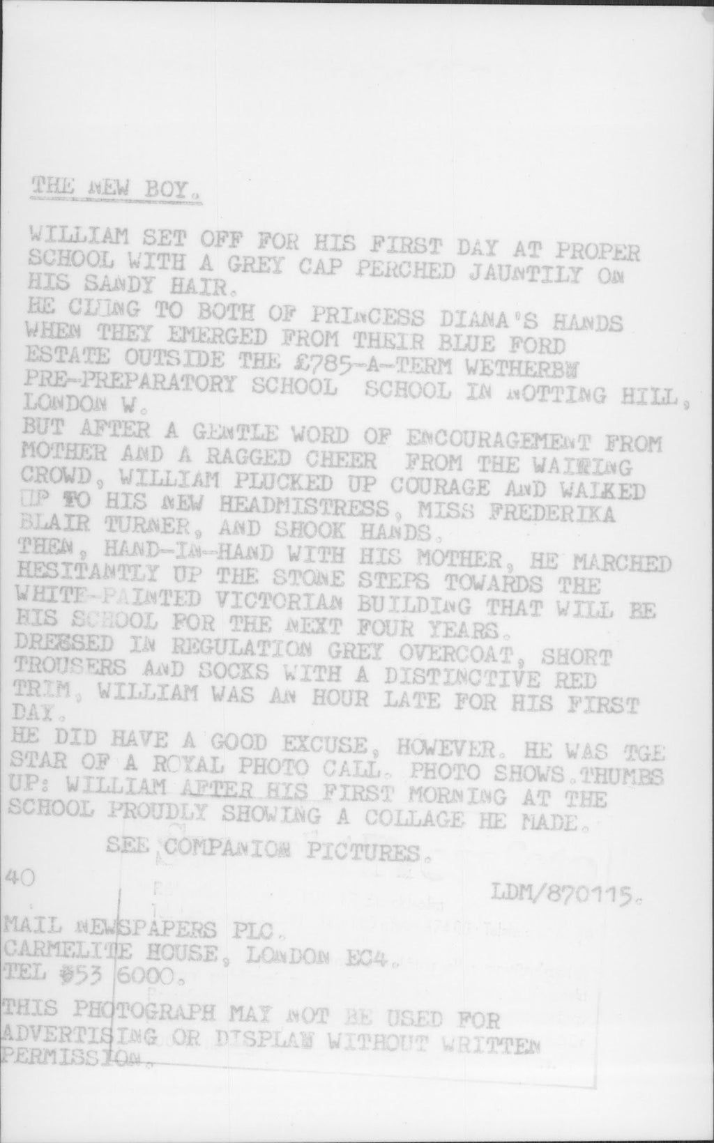 Prince William proudly displays a picture he has made at school - Vintage Photograph