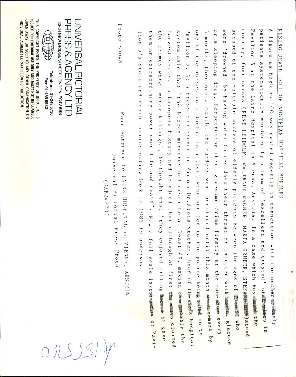 1982 FOUR NURSES ARE ACCUSED THE MULTIPLE MURDERS BACH MARIA DEATH PRESS - Vintage Photograph
