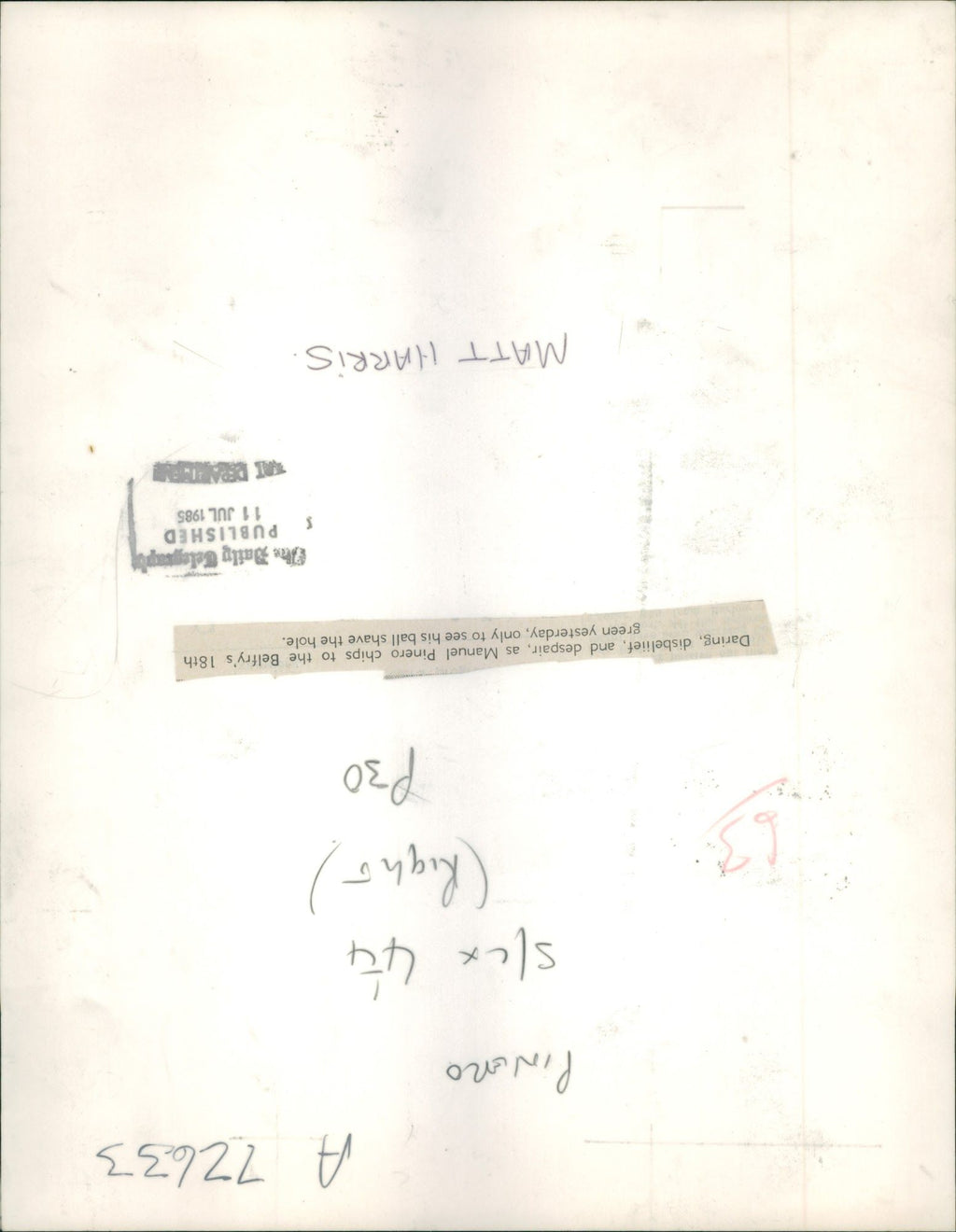 Manuel Pinero chips to the Belfry's 18th green yesterday, only to see his ball shave the hole. SolayA 72633 PINERO s / c + 44 ( Right) P30 Daring, disbelief , and despair , as Manuel Pinero Chips to the 18th Green yesterday. The Daily do 5 PUISHED 11 JUL 1985 MATT HARRIS. Manuel Pinero chips to the Belfry's 18th green yesterday, only to see his ball shave the hole. SolayA 72633 PINERO s / c + 44 ( Right) P30 Daring, disbelief , and despair , as Manuel Pinero Chips to the 18th Green yesterday. The Daily do 5 PUISHED 11 JUL 1985 MATT HARRIS.