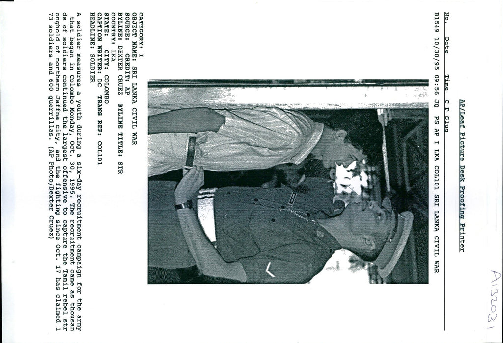 The recruitment came as soldiers continued the largest offensive to capture the Tamil rebel str onghold of northern Jaffna city. The fighting since Oct. 17 has claimed 1 73 soldiers and 600 guerrillas. ( AP Photo / Dexter Cruez) The recruitment came during a six - day recruitment campaign for the army. The recruitment came as soldiers continued the largest offensive to capture the Tamil rebel str onghold of northern Jaffna city. The fighting since Oct. 17 has claimed 1 73 soldiers and 600 guerrillas. ( AP Photo / Dexter Cruez) The recruitment came during a six - day recruitment campaign for the army.