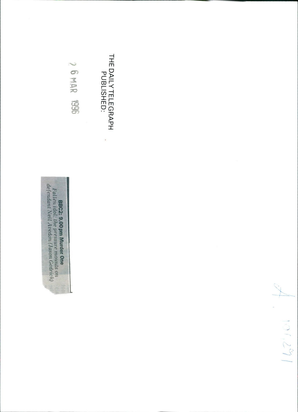 Murder One Fallen idol: The Trial of Neil Avedon is broadcast on BBC2 on 26 March 1996 at 9.00pm. The trial is the trial of the man accused of murdering his wife. The jury deliberated for more than two hours before convicting Neil Aveson of murder. Murder One Fallen idol: The Trial of Neil Avedon is broadcast on BBC2 on 26 March 1996 at 9.00pm. The trial is the trial of the man accused of murdering his wife. The jury deliberated for more than two hours before convicting Neil Aveson of murder.