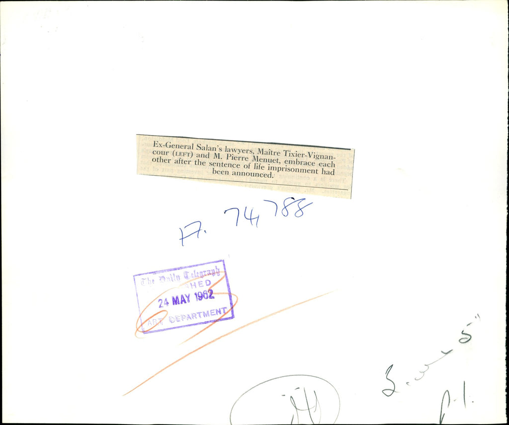 A photo of Maitre Tixier-Vignancour with M. Pierre Menuet. - Vintage Photograph
