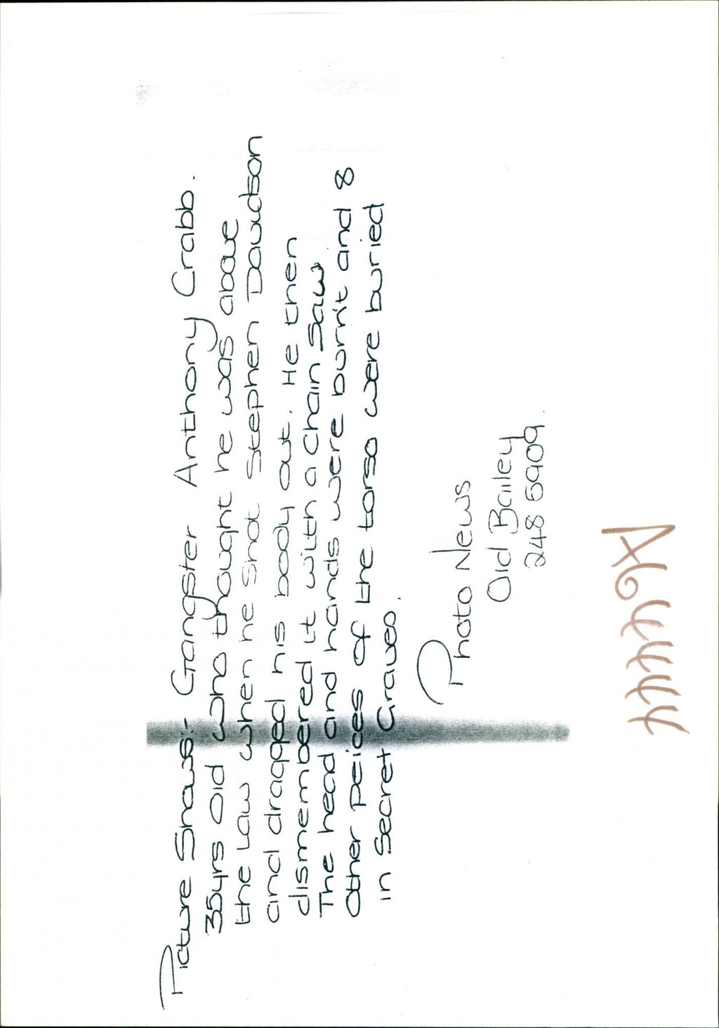 Accused murderer Anthony Crabb who shot Stephen Davidson - Vintage Photograph