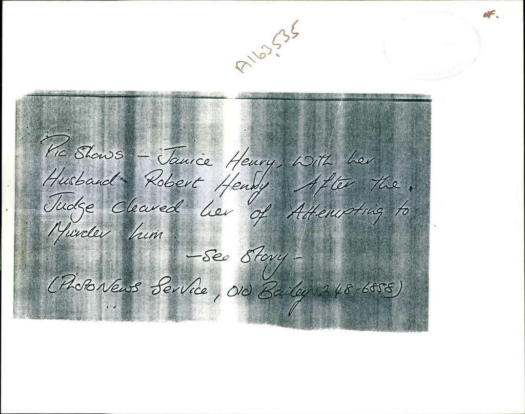 After the Judge cleared her of Alteresting to Murder him -see Story - ( Puso News Service , Old Beloy 248-6658 ) Bailey. A163535 The Shows - Janice Henry , ach ces Husband Robert Hendy. After the Judge cleared her of Alteresting to Murder him -see Story - ( Puso News Service , Old Beloy 248-6658 ) Bailey. A163535 The Shows - Janice Henry , ach ces Husband Robert Hendy.