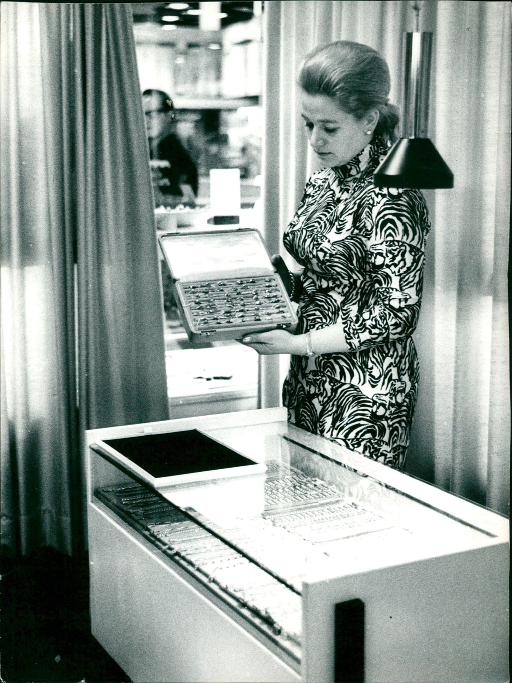 CRIMEA RAUB JUWE LENROUBO JEWELLER PUSCHNER MURDER ERIKA KRU Das Foto zeigt Erika Krüger mit einem Ring-Schmuckkästchen im Juweliergeschäft.