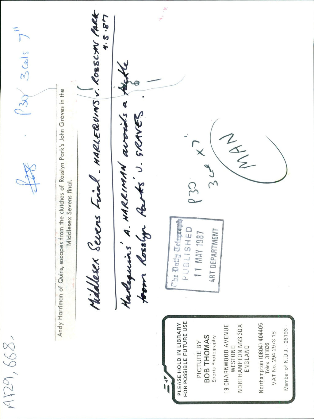 All our press photos are LIMITED ARCHIVE ORIGINALS - they are the actual prints that were used by the newspapers, they are not reprints or digital prints produced by us. All the prints are at least 30 years old and up to 100 years old.