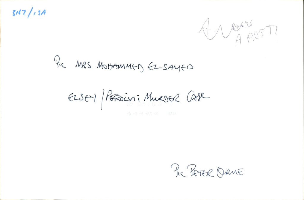 MRS MOHAMMED EL - SAVED ELSEY PERoini MURDER Case Pic PETER ORME. 317 / 13A 8676 - A 19050 Pic MRS Mohammed El - Saved Elsey Peroini. MRS MOHAMMED EL - SAVED ELSEY PERoini MURDER Case Pic PETER ORME. 317 / 13A 8676 - A 19050 Pic MRS Mohammed El - Saved Elsey Peroini.
