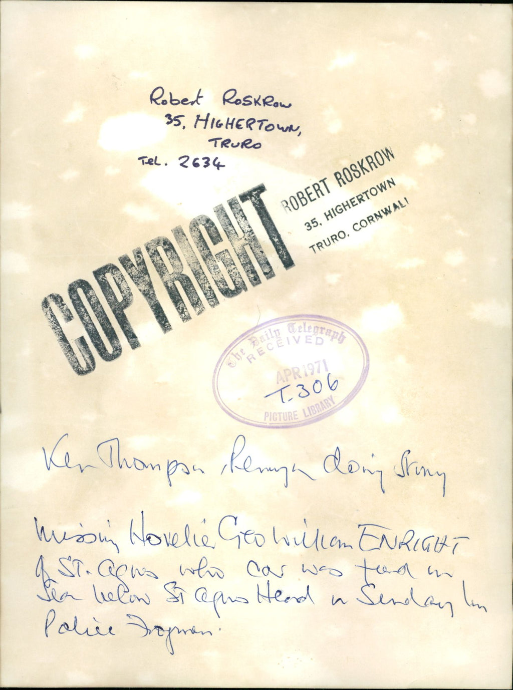 Murdered And Missing Person 1971:Ken Thompson. - Vintage Photograph