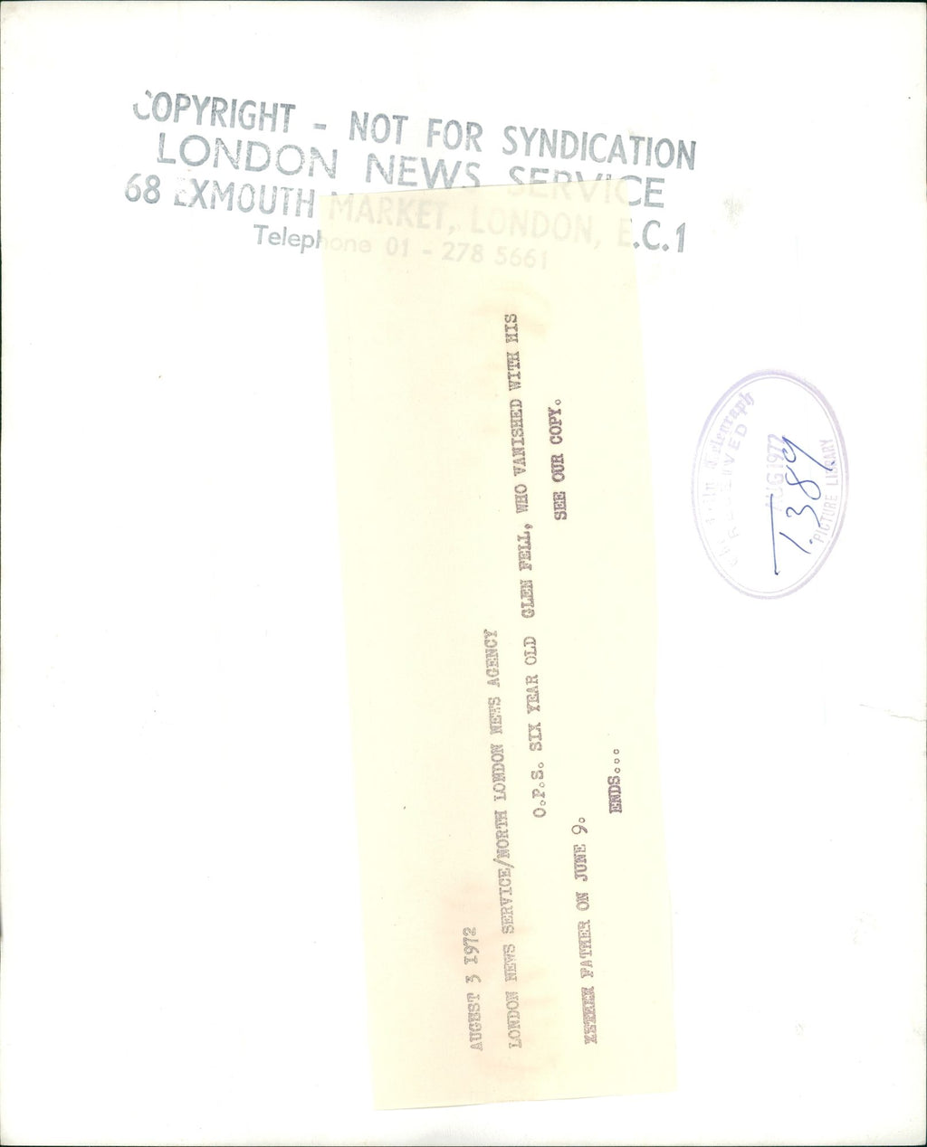 Murdered and Missing Persons: glenn fell. - Vintage Photograph