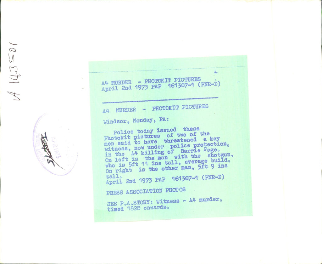All our press photos are LIMITED ARCHIVE ORIGINALS - they are the actual prints that were used by the newspapers, they are not reprints or digital prints produced by us. All the prints are at least 30 years old and up to 100 years old.