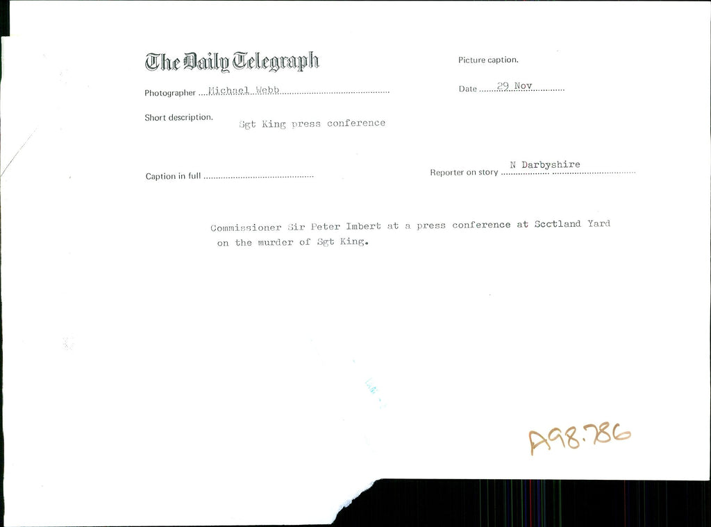 Police Commissioner Sir Peter Imbert talks about the murder of Sgt King - Vintage Photograph