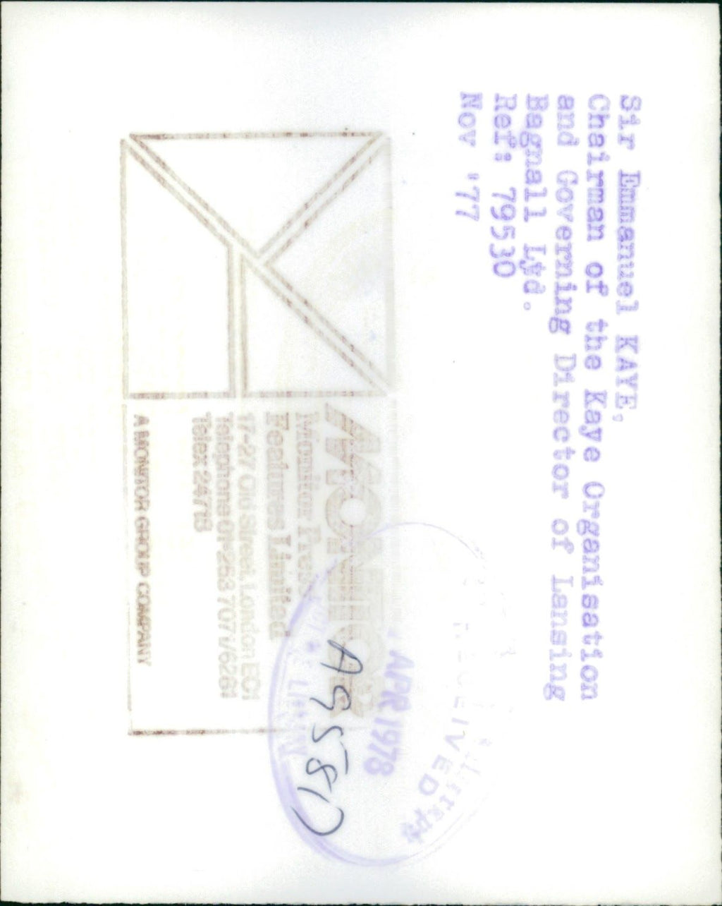All our press photos are LIMITED ARCHIVE ORIGINALS - they are the actual prints that were used by the newspapers, they are not reprints or digital prints produced by us. All the prints are at least 30 years old and up to 100 years old.