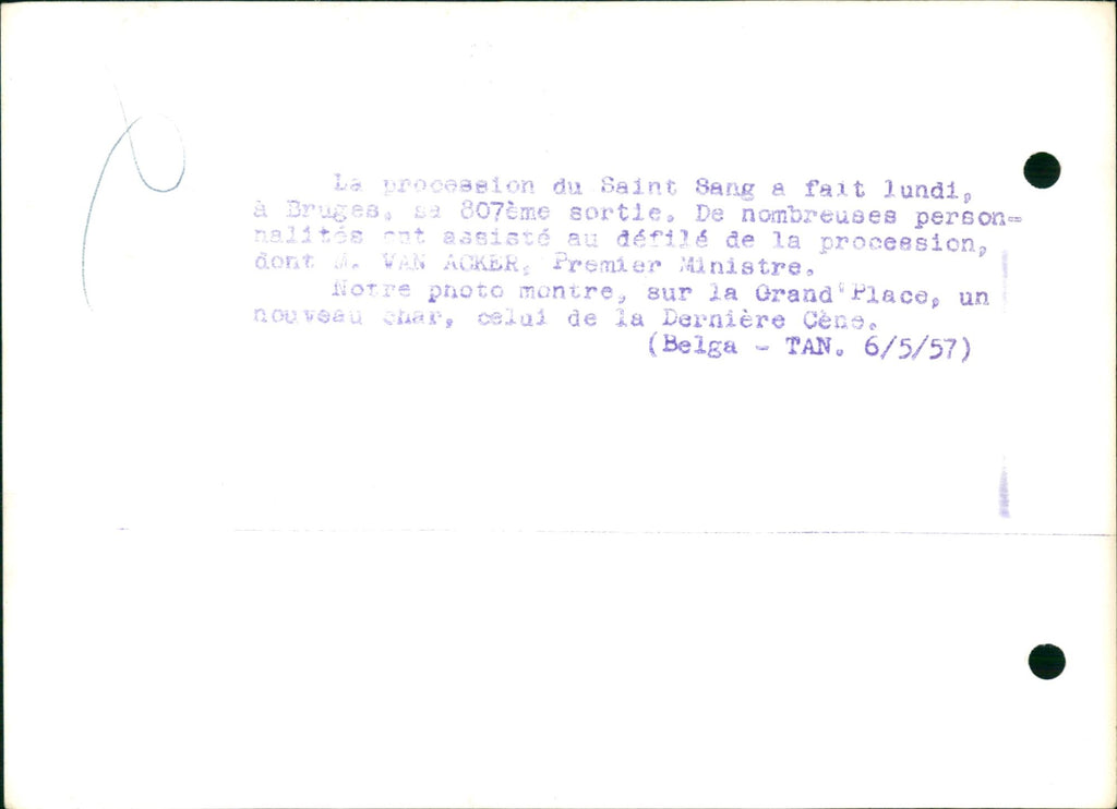 The procession of the Holy Blood made its 807th outing in Bruges. Many personalities attended the procession parade, of which Mr. VAN ACKER, Prime Minister. Our photo shows, on the Grand Place, a chariot, that of the Last Supper. The procession of the Holy Blood made its 807th outing in Bruges. Many personalities attended the procession parade, of which Mr. VAN ACKER, Prime Minister. Our photo shows, on the Grand Place, a chariot, that of the Last Supper.