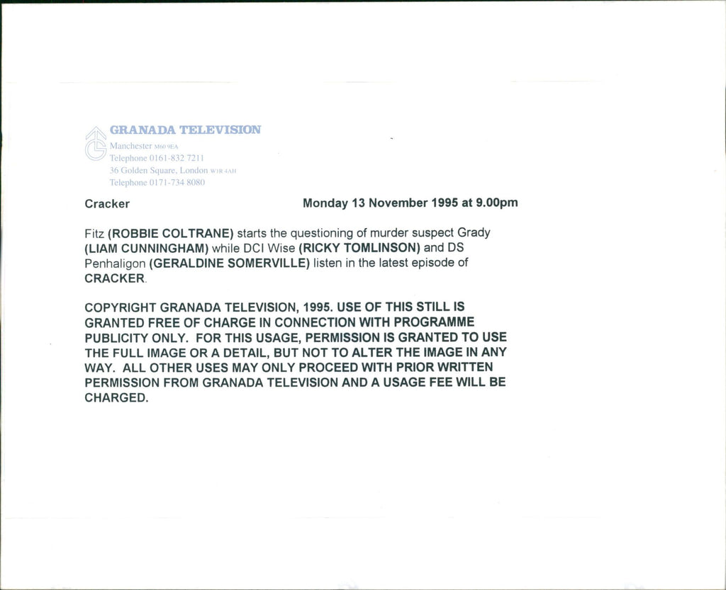 Cracker Robcolcractit.png Created by Jimmy McGovern Starring Robbie Coltrane Geraldine Somerville Christopher Eccleston Ricky Tomlinson Lorcan Cranitch Barbara Flynn Kieran O'Brien Country of origin United Kingdom Original language(s) English No. of series 5 No. of episodes 25 (list of episodes) Production Executive producer(s) Sally Head Producer(s) Gub Neal Paul Abbott Hilary Bevan Jones John Chapman Production location(s) Manchester, England, UK Running time 50 mins. (Series 1-3) 120 mins. (Series 4-5) Release Original network ITV Original release 27 September 1993 – 1 October 2006 Cracker is a British crime drama series produced by Granada Television for ITV, created and principally written by Jimmy McGovern. Cracker Robcolcractit.png Created by Jimmy McGovern Starring Robbie Coltrane Geraldine Somerville Christopher Eccleston Ricky Tomlinson Lorcan Cranitch Barbara Flynn Kieran O'Brien Country of origin United Kingdom Original language(s) English No. of series 5 No. of episodes 25 (list of episodes) Production Executive producer(s) Sally Head Producer(s) Gub Neal Paul Abbott Hilary Bevan Jones John Chapman Production location(s) Manchester, England, UK Running time 50 mins. (Series 1-3) 120 mins. (Series 4-5) Release Original network ITV Original release 27 September 1993 – 1 October 2006 Cracker is a British crime drama series produced by Granada Television for ITV, created and principally written by Jimmy McGovern.