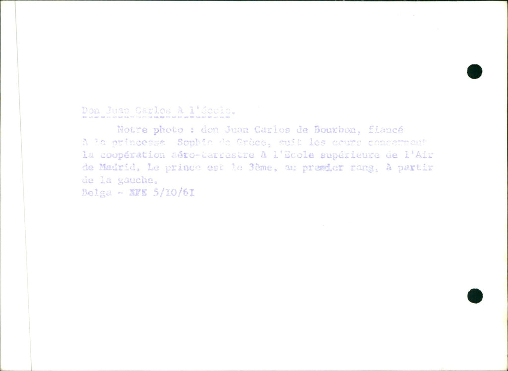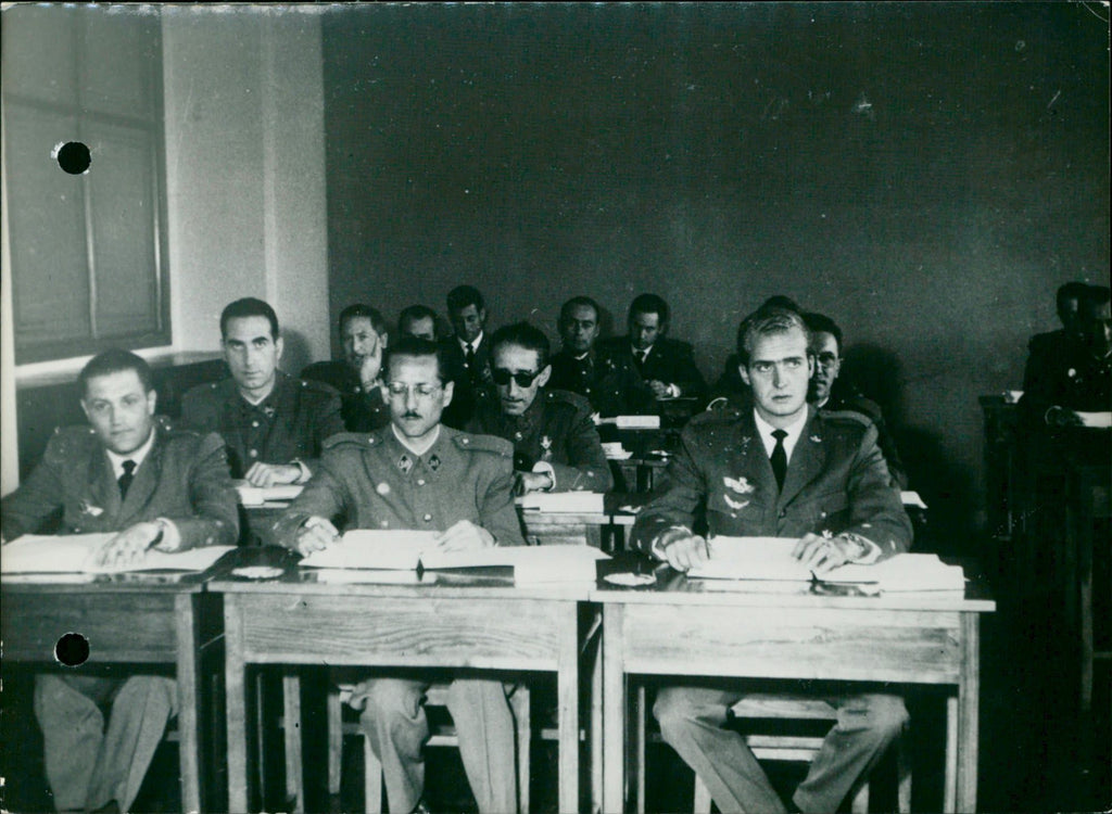 Juan Carlos de Bourbon, fiancé of princess Sophie of Greece studies at the "École de l'air" in Madrid. The prince is the 3rd one, in the front row, on the left.