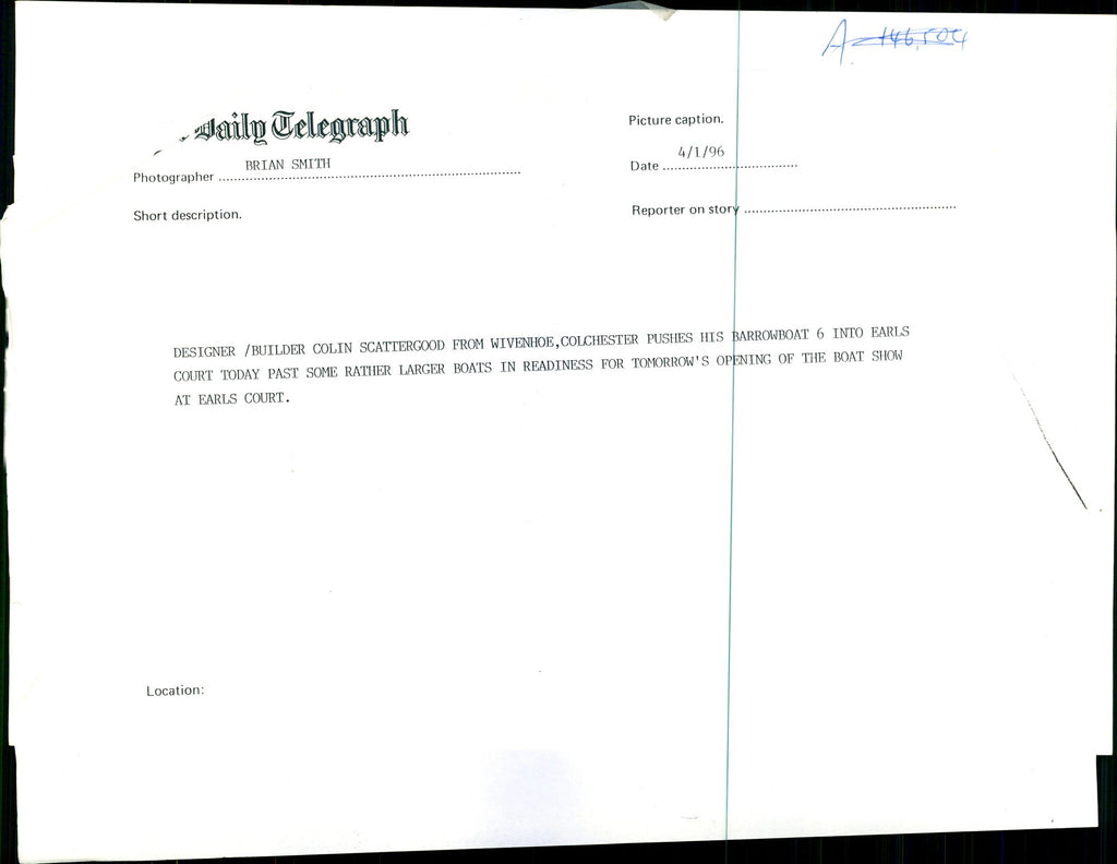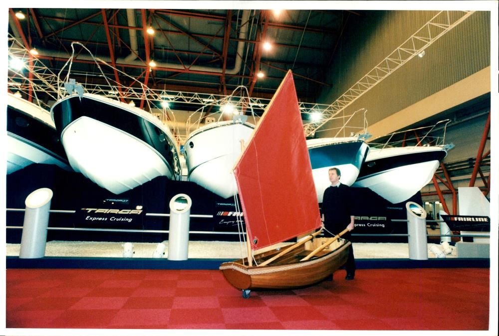 Designer / Builder Colin Scattergood from Wivenhoem Colchester pushes his Barrowboat 6 into Earls Court past some rather larger boats in readiness for the opening of the boat show at Earls Court. Designer / Builder Colin Scattergood from Wivenhoem Colchester pushes his Barrowboat 6 into Earls Court past some rather larger boats in readiness for the opening of the boat show at Earls Court.