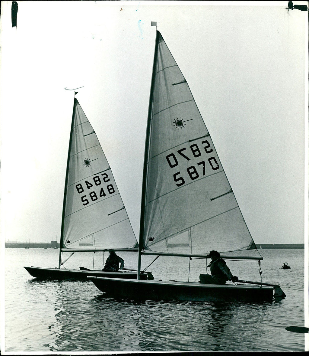 Lasers in light airs in Dunlaire Harbour. - Vintage Photograph