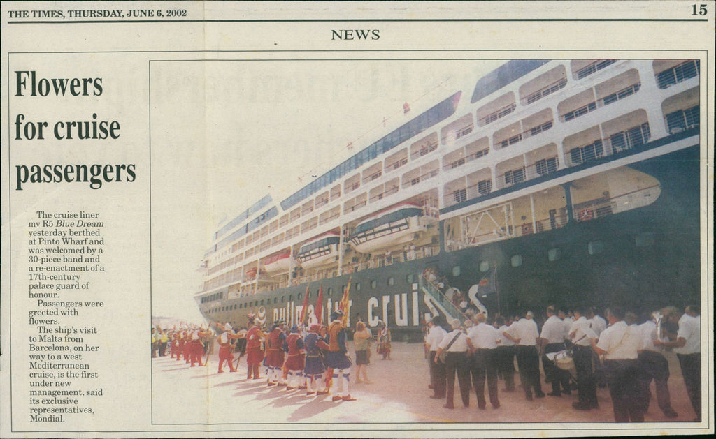 The cruise liner mv R5 Blue Dream berthed at Pinto Wharf. The ship's visit to Malta from Barcelona on her way to west Mediterranean cruise. The cruise liner mv R5 Blue Dream berthed at Pinto Wharf. The ship's visit to Malta from Barcelona on her way to west Mediterranean cruise.